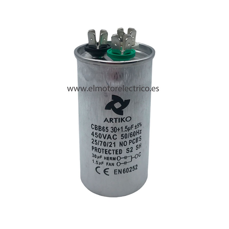CONDENSADOR ARRANQUE DOBLE 30+1.5MF 450W CBB65 450V,PARA AIRE ACONDICIONADO Y MOTOR DE EQUIPO INDUSTRIAL