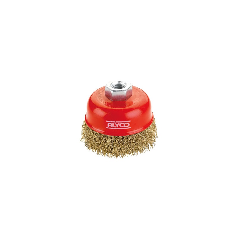 Cepillo de taza de alambres ondulados ideal para la eliminación de óxidos, pinturas y adherencias en general. Especialmente diseñado para su utilización en máquinas portátiles (amoladoras angulares), eléctricas o neumáticas.