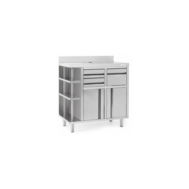 CUERPO CENTRAL, ESTANTES, RESPALDO Y COLUMNAS EN ACERO INOX AISI 304