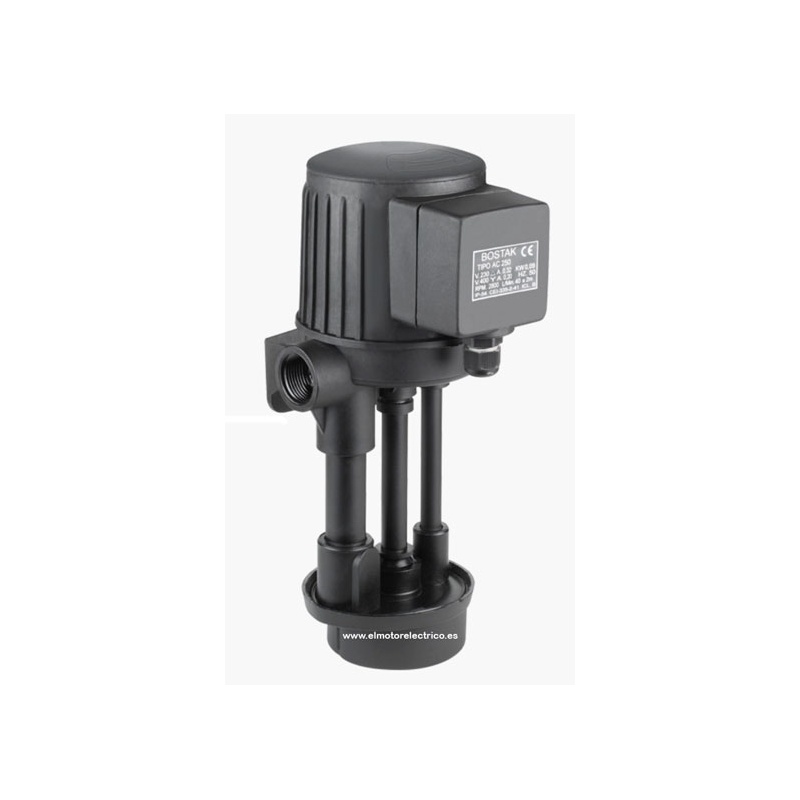 Bomba industrial apta para taladrina, agua o similares.Ideal para la refrigeracion de maquinaria de corte. Altura de la caña opcional desde 120 a 300 milimetros. Modelo AC